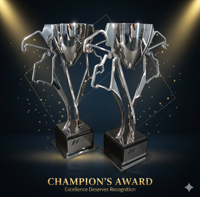 Velocity Awards F1 Inspired Championship Trophy | Large Modern Silver Cup for Motorsport & Corporate Events | Dynamic Racing Design for Winners | Customizable Engraving Plate